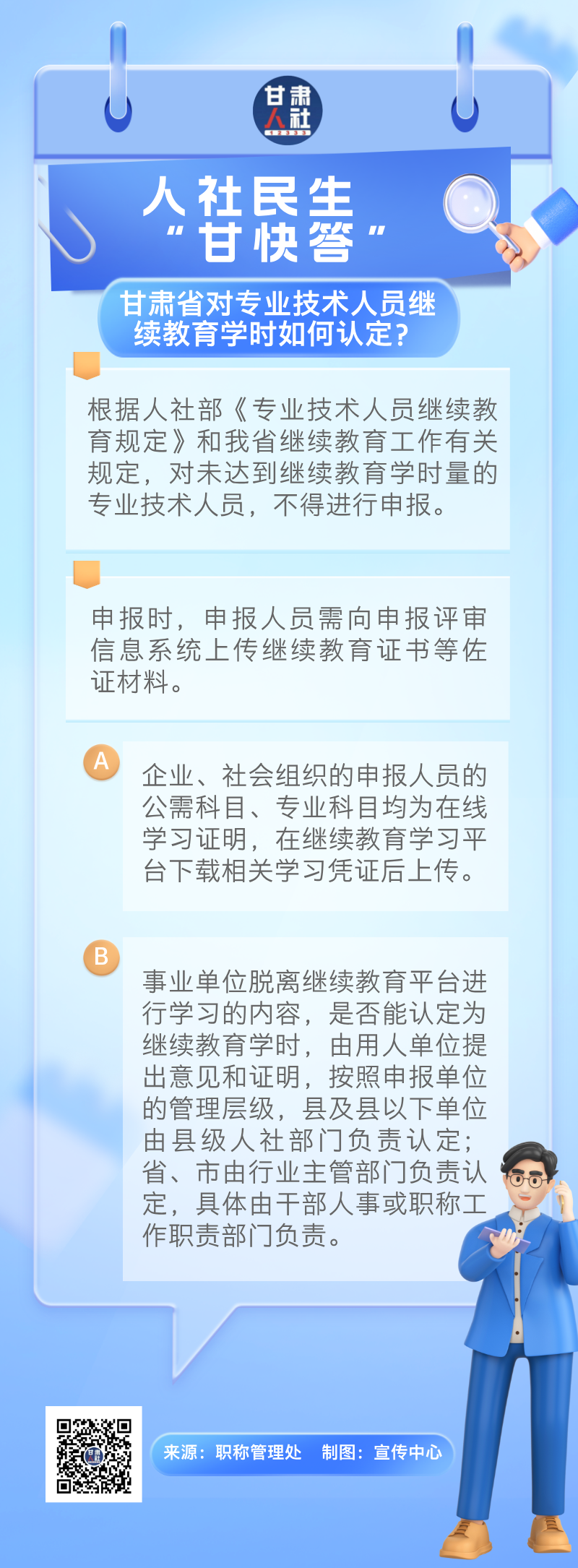 人社民生“甘快答”:甘肃省对专业技术人员继续教育学时如何认定?